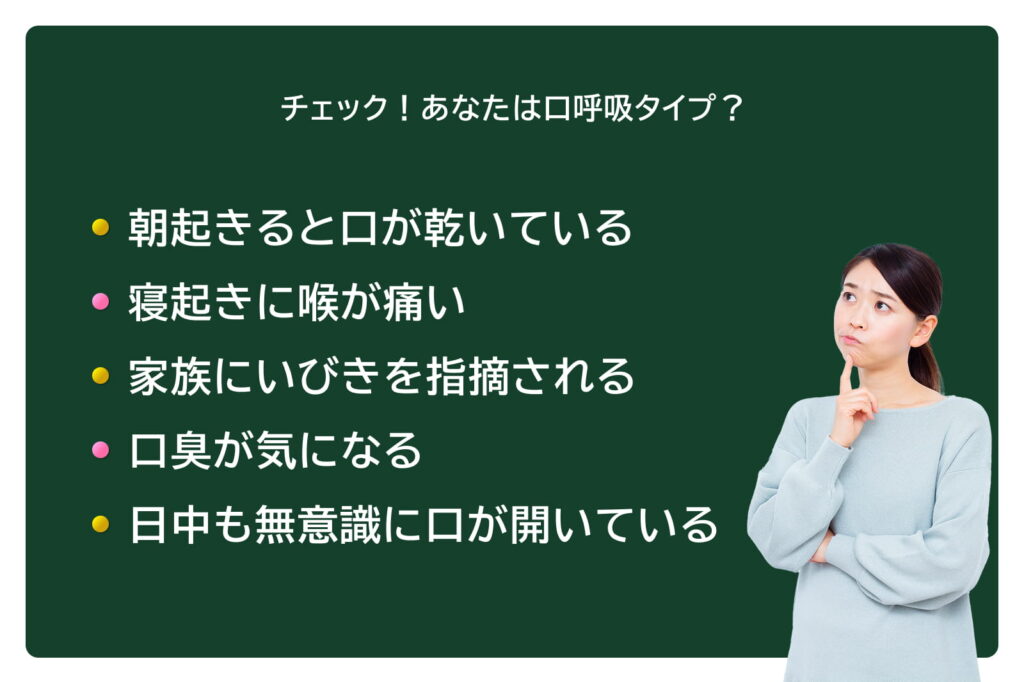 - 口呼吸は、ドライマウス・いびき・感染症リスクを高める要因となる